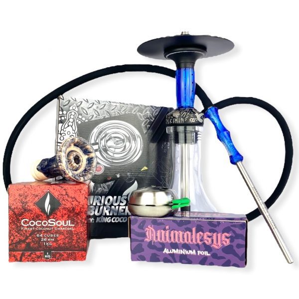 El PACK DMNT ALKIMIA AZUL MARINO incluye todos los productos que estás buscando en una primera compra de artículos de cachimbas.
