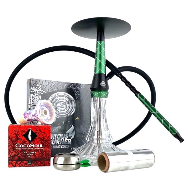 El PACK ERASMUS HERCULES VERDE incluye todos los productos que estás buscando en una primera compra de artículos de cachimbas.